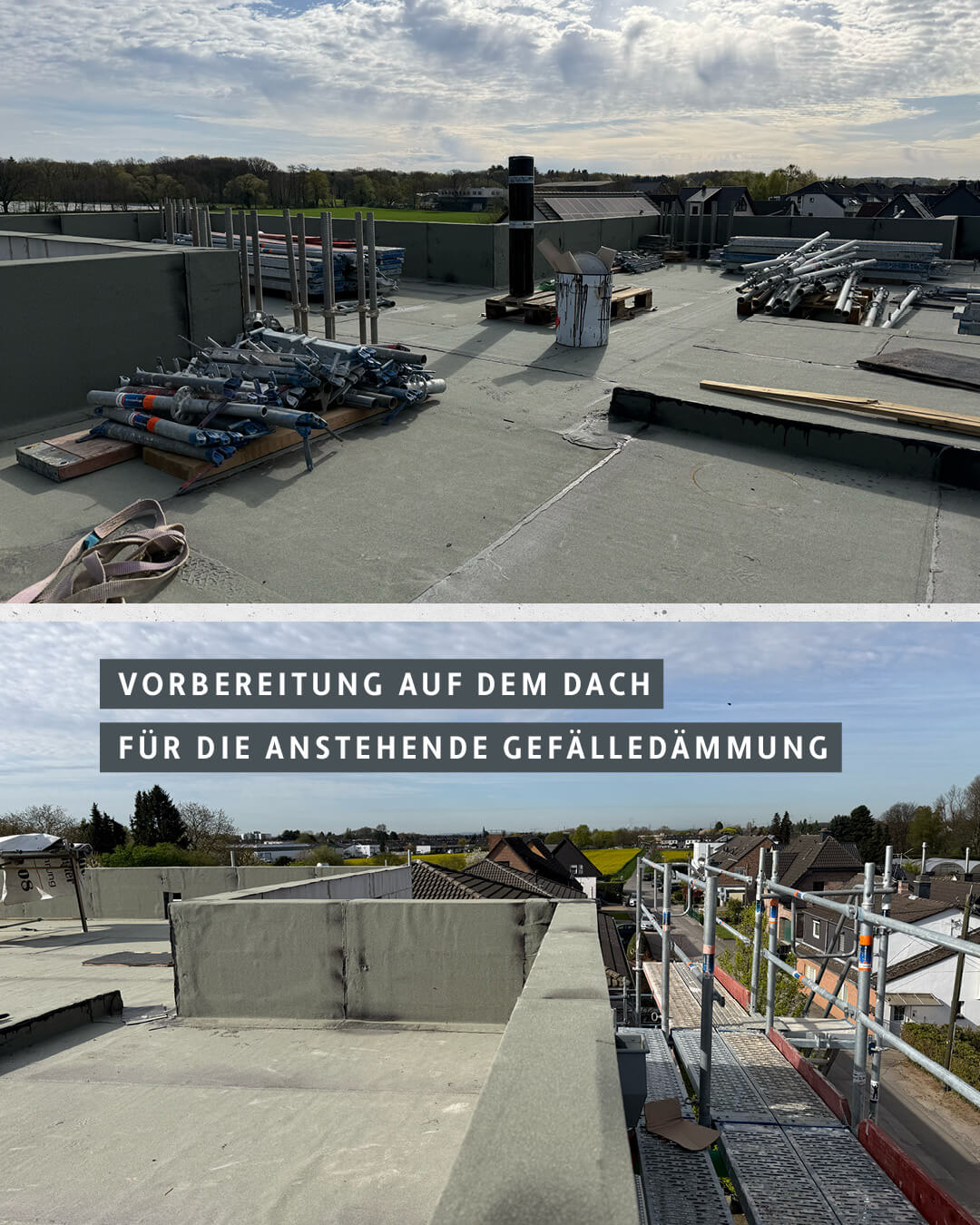 Das aktuelle Baustellenupdate Zur Götscher Mühle in Langenfeld-Richrath zeigt deutliche Fortschritte auf der Baustelle. Die Rohinstallationen für Elektro sowie Heizung & Sanitär sind in den meisten Wohnungen abgeschlossen. Auch die Abdichtung der Flachdächer wurde erfolgreich umgesetzt. Aktuell wird hier die Gefälledämmung geplant, anschließend bestellt und zeitnah eingebaut. Der Aufzug ist bereits vollständig installiert.